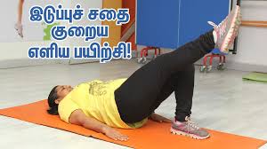 * நின்றுக் கொண்டு கால்களின் முட்டியினை மட்டும் தூக்கி இறக்கவும். இவ்வாறு 20 முறை செய்யவும். நன்றாக நடக்கவும். அப்ப தான் இடுப்புத்தொடை உறுதியாக்கும்.