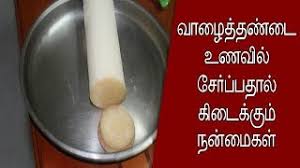 * வாழைத்தண்டை பொரியல் செய்து சாப்பிட்டால் குடலில் சிக்கியுள்ள முடி, நஞ்சு போன்றவை வெளியேறிவிடும்.